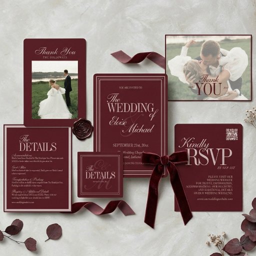 Elegant Script Burgundy Red Formal Wedding SuiteConçu par Molly H