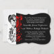 Maintenant avec des bords d'invitation en forme. Beau noir et blanc avec de véritables accents tourbillonnant rouges, une feuille de défilement moderne moderne floral tourbillon sur le côté avec pour la plupart noir arrière - plan et police sage, décoré avec de jolis feuilles et des éléments tourbillonnants de curling. Customisez en ligne avec vos coordonnées de mariage.