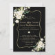 Invitation Elégant Mariage noir cadre or Fleurs blanches