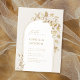 Ces élégantes invitations modernes présentent des illustrations botaniques florales en faux or, encadrent une ligne dorée délicate en forme d'arc. Vos informations de fête apparaissent dans un script romantique et une police serif sophistiquée. Grandes invitations de mariage fleuri pour mariage romantique dans le jardin, et mariage moderne luxe. Voir toutes les pièces correspondantes dans la collection.
