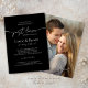 Elégant Faire-part de mariage photo moderne noir et blanc. Cette élégante invitation de mariage est dotée d'un script moderne et d'une typographie avec une photo pleine dimension à l'arrière.