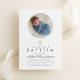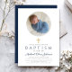 Invitation Élégant Marine Bleu Script Boy Photo Baptême
