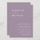 Mauve Purple Typographie Moderne QR Code Tout En Un Minimaliste Carte Faire-part de mariage. Célébrez votre journée spéciale avec cette belle et élégante carte de faire-part de mariage pour embellir votre occasion spéciale. Tous les textes sont pré-arrangés pour que vous personnalisiez facilement et rapidement avec vos propres détails. Si vous avez besoin d'une personnalisation ou d'une correspondance, envoyez un courriel à alldaybreakfastzazzle@gmail.com - nous aimerions vous aider.