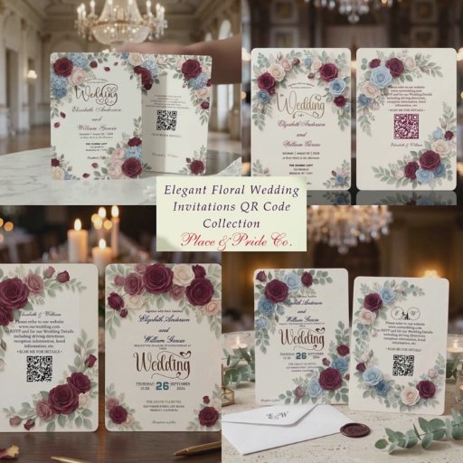 Elegant Floral Wedding Invitations QR CodeConçu par Istudor Nicolae Ionut