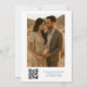 Annoncez votre mariage dans le style avec cet élégant faire-part de mariage photo de code QR moderne, avec votre photo préférée associée à une typographie épurée et minimaliste. Un code QR intégré rend les RSVP simples et dirige les invités vers votre site Web mariage pour tous les détails. Idéal pour les couples qui souhaitent un design élégant et contemporain alliant élégance et commodité. Entièrement personnalisable et professionnellement imprimé sur papier de qualité supérieure pour une finition polie et prête à imprimer.