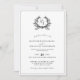 Il s'agit d'une crête botanique et d'un faire-part de mariage monogramme élégant, formel et classique en noir et blanc. Le dos de la carte contient un code QR pour les détails supplémentaires de votre site.