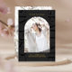 Cette faire-part moderne de deux diplômes de photo comporte un élégant arrière - plan noir et une grande typographie avec une arche de photo géométrique avant, et une photo complète au dos de la carte.