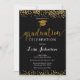 Élégant noir et or Parties scintillant étincelante Graduation Invitation