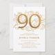 Elégante invitation à la fête du 90ème anniversaire d'or blanc. Design féminin moderne et personnalisable avec des accents botaniques rose et de l'or de parties scintillant faux. Carte invitation florale simple parfaite pour une célébration anniversaire élégante. Personnalisez avec vos propres détails. Invitations Zazzle imprimées ou téléchargement instantané modèle imprimable numérique.