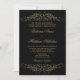 Copyright © Socialite Designs Inc. Customisez notre élégant faire-part de mariage en monogramme or et damas pour votre journée spéciale. Le design a brûlé la police de couleur or sur l'arrière - plan noir. Un beau modèle d'invitation qui peut être customisé à tout événement formel.
