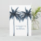 Palmiers faire-part de mariage formelles. Deux élégants palmiers bleus font partie de la canopée sur les noms Bride et Grooms. Design élégant moderne et mariage. Les informations sur le dos sont facilement changées pour les vôtres. Le script moderne est facilement changé pour vos propres informations personnalisées. Une invitation de mariage personnalisée d'une suite de mariages stationnés chez Chessie's Fine Designs.