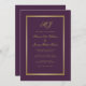 Invitation Élégant Plum violet or Script Monogramme Mariage