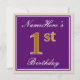 Invitation Elégant, pourpre, Faux Gold 1er anniversaire + Nom