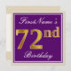 Invitation Elégant, pourpre, Faux Gold 72e anniversaire + Nom