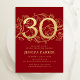 Elégante invitation à la fête du 30e anniversaire en or rouge. Design féminin moderne et personnalisable avec des accents botaniques rose et de l'or de parties scintillant faux. Carte invitation florale simple parfaite pour une célébration anniversaire élégante. Personnalisez avec vos propres détails. Invitations Zazzle imprimées ou téléchargement instantané modèle imprimable numérique.