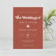 Un thème rétro chic : adoptez ce design typographique vintage et élégant pour votre papeterie Mariage, avec un thème couleur terre cuite. Facile à mélanger et à assortir avec notre papeterie similaire disponible en rose pêche, rouille orange & sucre brun. Couleurs et arrière - plans de texte entièrement personnalisables.