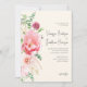 Cet élégant rose poussiéreux, rose vif et faire-part de mariage fleuri d'ivoire présente de belles fleurs de rose, de pivoines roses et de bleuets, d'eucalyptus, de verdure et de calligraphie stylée sur un arrière - plan d'ivoire. Le dos de la carte est muni d'un arrière - plan rose poussiéreux. Cette invitation est parfaite pour le couple ayant son mariage dans un lieu romantique, formel, élégant, moderne, chic, sophistiqué, rustique, tendance ou extérieur mariage.