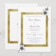 Deux roses de Noël, dessinés à la main dans un crayon graphite classique, décorent ce modèle d'hiver rustique, moderne, sophistiqué, élégant et chic ou un faire-part de mariage de Noël qui est une prise moderne sur un cadre mariage fleuri traditionnel. La texture du crayon noir apparaît sur le papier blanc, lui donnant un sentiment d'élégance sans effort. Le cadre en or (pas de vrai papier peint !) est également une version mise à jour d'un classique, donnant à la structure design mais gardant un sens de fraîcheur moderne. Il présente une calligraphie script moderne pour les noms de la mariée et du marié.