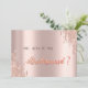 Carte de demoiselle d'honneur élégante et chic avec éclaboussures de paillettes rose doré.