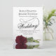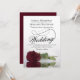 Cette belle faire-part de mariage présente une magnifique photo d'un seul rose bordeaux à longue tige allongé sur son côté, se reflétant dans un bassin d'eau avec vagues et ondulations. Le design se compose d'un script de calligraphie sophistiqué avec une longue queue bouclée, ce qui le rend à la fois moderne et classique. Une façon élégante, sophistiquée et chic d'invitation vos amis et votre famille à partager dans votre journée spéciale. Le dos de la carte est marbré ou rouge vin avec un motif moelleux.