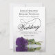 Cette belle faire-part de mariage est ornée d'une superbe photo d'un seul rose royal aux longues tiges de couleur violet allongé sur son côté, se reflétant dans un bassin d'eau avec vagues et ondulations. Le design se compose d'un script de calligraphie sophistiqué avec une longue queue bouclée, ce qui le rend à la fois moderne et classique. Une façon élégante, sophistiquée et chic d'invitation vos amis et votre famille à partager dans votre journée spéciale. Le dos de la carte est marbré violet ou violet profond avec un motif moelleux.