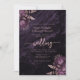 Cette élégante invitation à un mariage présente des bouquets de fleurs violettes agrémentés d'une végétation en faux feuille d'or rose dans deux coins, sur une image arrière - plan d'agate d'aquarelle violette. Le texte personnalisable combine les polices serif, italique et manuscrite. L'envers offre de l'espace pour les détails du mariage, ainsi qu'un code QR que les clients peuvent scanner pour visiter votre site Web et RSVP, ce qui permet d'économiser le coût d'impression et d'envoi de cartes RSVP séparées.