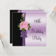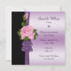Belle image imprimée d'une fleur rose sur un joli ruban violet sur un dégradé époustouflant lilas et arrière - plan noir. Ce sont des invitations magnifiquement conçus pour les fêtes d'anniversaire des femmes avec des fleurs mignonnes, élégantes, girly et arc dans les couleurs rose et lilas. Un design moderne à la mode avec un look romantique sophistiqué. Le verso de cette carte a le même design avec les détails de votre événement. Cartes élégantes, sophistiquées et modernes pour toute femme de tout âge. Tout le texte est entièrement personnalisable pour répondre à vos besoins, si vous avez besoin d'aide pour customiser votre produit, s'il vous plaît contactez-moi par mon magasin et je serai très heureux de vous aider.