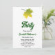 Cette élégante invitation d'anniversaire d'automne est parfaite pour un anniversaire d'automne moderne. Le design simple présente des feuilles de chute verte avec une élégante typographie noire et verte sur un arrière - plan blanc.