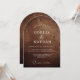 Invite your guests with this stunning arched wedding invitation featuring a rich, dark wood grain texture that exudes rustic elegance. This modern yet organic design perfectly captures the romantic essence of a woodland or country-style celebration.