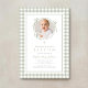 Elegant Sage Green Gingham Bow Photo Girl Baptism Invitation. For best results upload a square image of the baby.