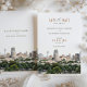 Annoncez votre prochain mariage avec cette invitation sophistiquée Save-the-Date qui met en vedette l'impressionnante silhouette de San Antonio, Texas. La carte présente une belle aquarelle illustrant le paysage urbain animé de San Antonio, mettant en évidence son mélange unique d'architecture historique et moderne au milieu d'une végétation luxuriante. Le texte est présenté avec élégance dans un mélange de polices de caractères serif et de caractères délicats, utilisant des couleurs comme l'or muté, le vert olive et la terre cuite chaude. Idéal pour les couples qui planifient un mariage urbain contemporain, cette invitation saisit l'essence du charme de San Antonio avec élégance artistique.