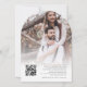 Élégant Script 2 Photos superposer QR Code Arch Faire-part de mariage. Ajoutez votre code QR à votre site Web mariage au verso afin que vos invités puissent RSVP et voir tous les détails en ligne sans avoir besoin de pièces jointes séparées. Une typographie informelle en noir pour l'en-tête principal du Mariage De compléter le reste du texte que vous pouvez facilement personnaliser. Remplacez les exemples de photos par vos propres favoris.