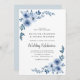 Invitation Élégant script bleu fleurs mariage