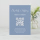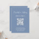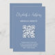 Cette invitation minimaliste au mariage de code qr comporte un élégant script manuscrit sur un arrière - plan bleu poussiéreux. Pour plus de détails sur votre site web mariage et rsvp en ligne. Le code couleur de cette teinte bleue poussiéreuse est #7891B2. En coque, le concepteur de votre site mariage en a besoin.