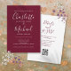 Invitation Élégant Script Burgundy Vin QR Code Mariage