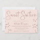 Un scénario de parties scintillant en or rose chic, moderne et élégant, typographie de l'Sweet sixteen d'anniversaire avec un confetti scintillant de parties scintillant sur un rose pastel émaillé et un arrière - plan en or rose brillant à l'arrière. Un sweet sixteen luxueux et élégant.