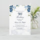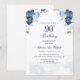 Élégant Script floral 90th Birthday Celebration Invitation vous pouvez facilement customiser avec les détails de votre fête en cliquant sur le bouton "Personnaliser". Doté d'un bleu poussiéreux floral et de verdure avec typographie moderne.