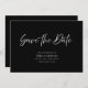 Introduire notre mariage moderne et élégant enregistrer l'invitation de la date. Cet élégant design minimaliste est composé d'écriture manuscrite blanche et de lettrage classique sur un arrière - plan noir, ce qui le rend parfait pour les mariages formels. Vous pouvez également customiser les couleurs du texte et de l'arrière - plan pour correspondre à votre thème. Faites savoir à vos invités qu'une célébration extraordinaire est en train de se produire avec notre élégante, sauf les invitations à la date. Commandez le vôtre aujourd'hui et donnez le ton parfait pour votre journée spéciale !