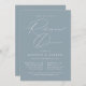 Nos invitations à des dîners de répétition modernes comprennent les mots "Dîner de répétition" affichés dans un élégant script de calligraphie blanche avec un arrière - plan bleu poussiéreux (ou la couleur de votre choix). Personnalisez les invitations à dîner de répétition bleu poussiéreux avec vos noms, la date, les informations de répétition et les détails du dîner. L'invitation chic est parfait pour des dîners de répétition décontractés et formels.