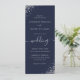Elégante invitation à mariage bleu marine et argent avec parties scintillant argent sur un arrière - plan bleu marine. Invitations de mariage chic avec script moderne parfait pour une élégante et luxueuse célébration marine bleu et argent mariage.