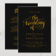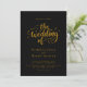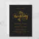 Cette élégante faire-part de mariage en noir et or est parfaite pour un mariage moderne. Le design simple présente une élégante calligraphie dorée sur un arrière - plan noir. La carte d'invitation comprend les détails du mariage au dos au lieu de payer une carte d'enceinte séparée.