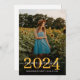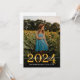Une invitation audacieuse boho chic moderne de remise de diplômes de photo avec photo et l'année de classe de graduation. Ajoutez vos photos de graduation créative. Convient pour le collège ou le lycée. Style individualiste créatif. Ajoutez une deuxième photo à l'arrière de l'invitation. Couleurs jaune or et bleu. Vous pouvez modifier la couleur du type lorsque vous personnalisez en faisant défiler vers le bas et en sélectionnant "modifier avec l'outil de conception". Sélectionnez simplement l'année dans la palette calques à gauche, puis choisissez les couleurs à droite.