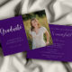 Cette invitation à la remise des diplômes présente un élégant thème violet et blanc avec une photo. La photo est à des fins de placement seulement et peut être remplacée par n'importe quelle photo de votre choix. Customisez le texte à l'avant et à l'arrière de la carte pour créer une invitation de remise de diplômes vraiment personnalisée. #fête de l'obtention du diplôme #classe de #diplôme d'études secondaires