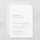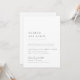 Cet élégant Script Simple Black White Faire-part de mariage allie typographie intemporelle à une disposition épurée et minimaliste pour une esthétique sophistiquée et moderne. Doté des noms du couple dans un script serif élégant, associé à une formulation mariage classique, ce design offre une palette de couleurs noir et blanc intemporelle, parfaite pour des célébrations mariages formelles. Idéal pour les couples qui apprécient un équilibre entre simplicité et élégance, cette invitation est entièrement personnalisable : éditez le texte, les polices et la mise en page pour créer une suite mariage unique. Disponible sous forme d'invitation imprimée ou de téléchargement numérique pour un partage et une impression aisés. Pour les demandes spéciales de personnalisation, envoyez un courriel à vividdhikr@gmail.com. © Vivid Dhikr 2025.