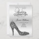 Invitation Elégant Séquin Noir Stiletto, Anniversaire Argent