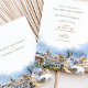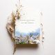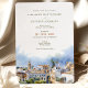 Célébrez votre journée spéciale avec cette exquise invitation de mariage Sevilla, Espagne destination. Dotée d'une étonnante aquarelle illustrant la ligne d'horizon pittoresque de Séville, cette invitation capture le charme et le romantisme de l'architecture historique de la ville. Le doux mélange de bleu azur, de terre cuite chaude et de végétation luxuriante évoque l'atmosphère vibrante de cet endroit enchanteur. L'élégante typographie en or et fontes classiques apporte une touche de sophistication, ce qui en fait un lieu idéal pour les couples qui souhaitent un mélange de tradition et de modernité. Customisez cette invitation avec vos détails mariages pour créer une impression durable sur vos invités.