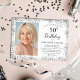 The design features a glamorous silvery glitter border and elegant handwritten script typography.