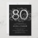 Élégante invitation de fête de 80e anniversaire en argent noir. Design féminin moderne et personnalisable avec des accents botaniques rose et de la fausse parties scintillant argent. Carte invitation florale simple parfaite pour une célébration anniversaire élégante. Personnalisez avec vos propres détails. Invitations Zazzle imprimées ou téléchargement instantané modèle imprimable numérique.
