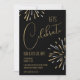 Moderne, élégant, minimal et simple célébrons l'invitation de la fête du Nouvel An. Calligraphie de typographie or et argent étincelante et détails de feux d'artifice sur un arrière - plan noir. Customisez facilement à vos informations.