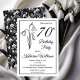 Elégante snowdrops conception florale du mois de naissance "70th Birthday Party" design avec un motif floral en chute de neige avec un motif floral en chute de neige noir et blanc sur le dos.